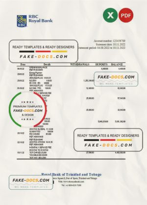 Trinidad and Tobago Royal bank statement, Excel and PDF template
