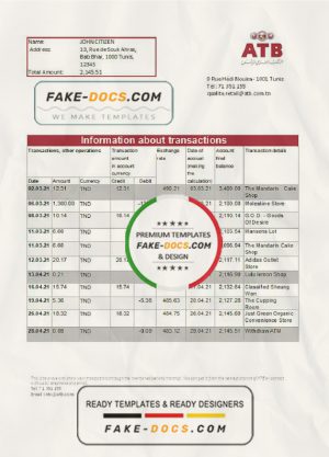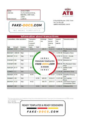 Tunisia ATB Bank statement easy to fill template in Excel and PDF format