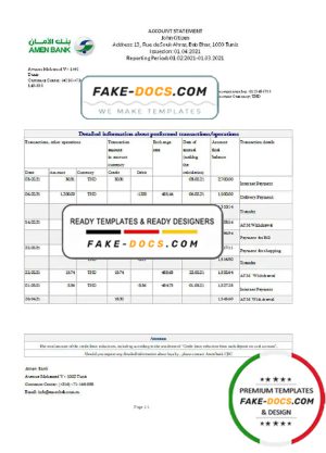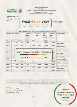 Tunisia Amen Bank statement easy to fill template in .xls and .pdf file format