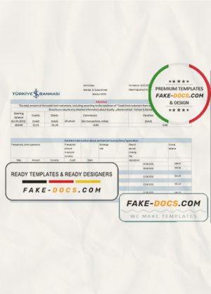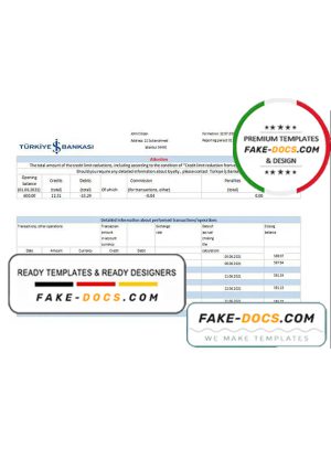 Turkey Bankasi Bank statement easy to fill template in .xls and .pdf format
