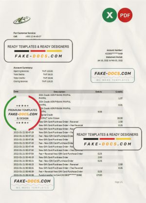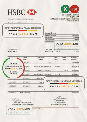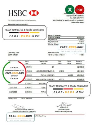 Turkey HSBC bank statement, Excel and PDF template