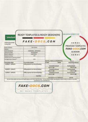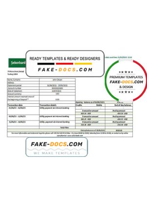 Turkey Sekerbank Bank statement easy to fill template in Excel and PDF format