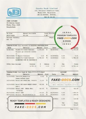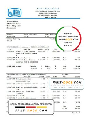 Bangladesh Janata bank statement easy to fill template in .xls and .pdf file format