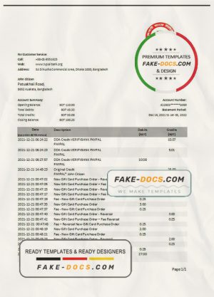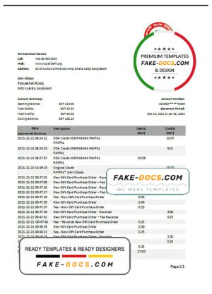 Bangladesh Rupalii bank statement template in Excel and PDF format