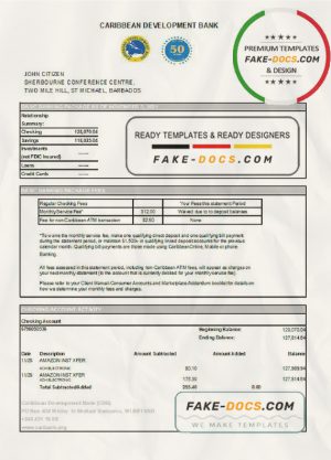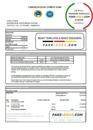 Barbados Caribbean Development bank statement easy to fill template in .xls and .pdf file format