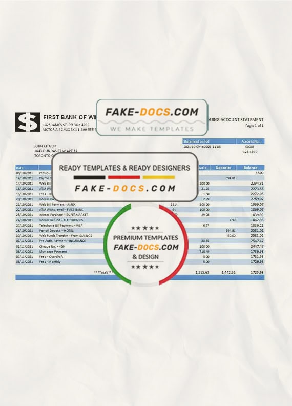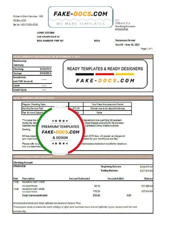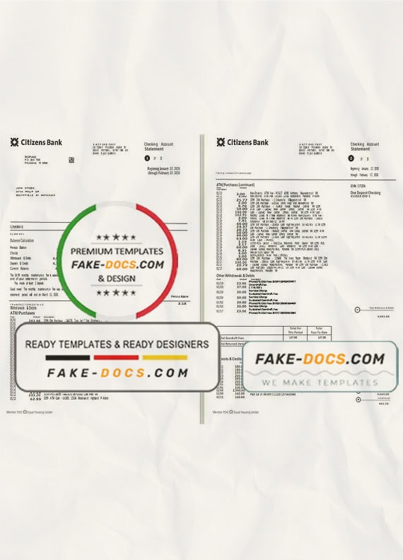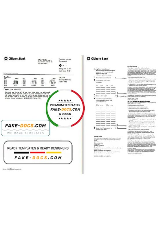 USA Citizens bank statement template in Excel and PDF format, (4 pages) good for address prove