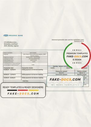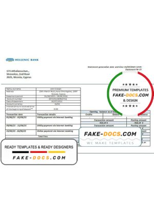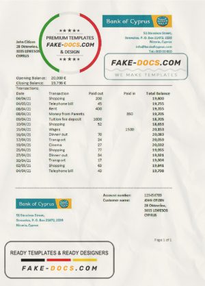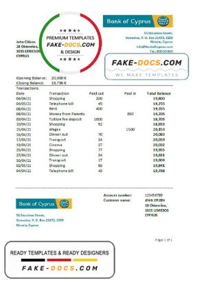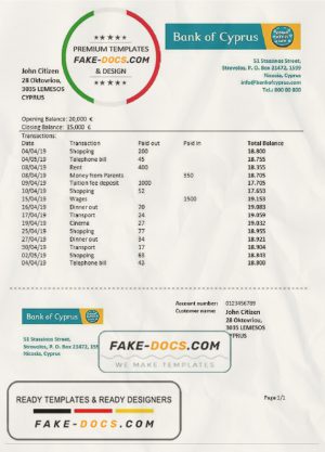 Cyprus Bank of Cyprus proof of address bank statement template in Word and PDF format