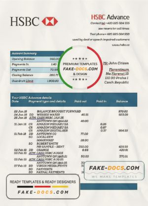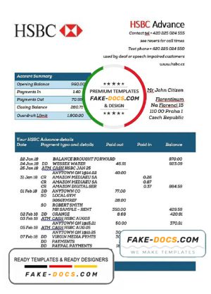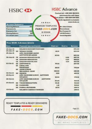 Czech HSBC bank statement easy to fill template in .doc and .pdf format, fully editable