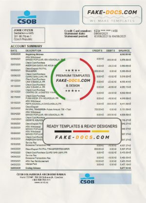 Czech Republic Československá Obchodní Banka statement template in Word and PDF format