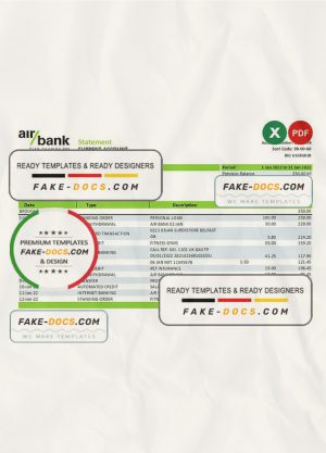 Czech Republic Československá Obchodní Banka bank statement easy to fill template in .xls and .pdf file format