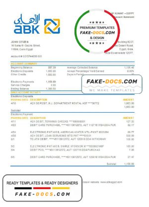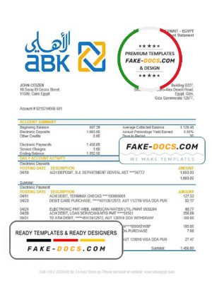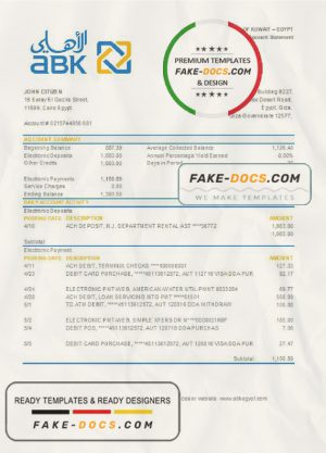 Egypt Al Ahli Bank of Kuwait bank statement easy to fill template in Word and PDF format