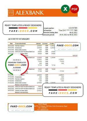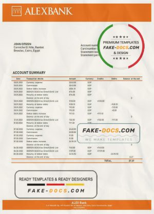 Egypt Alex Bank of Egypt proof of address statement template in Word and PDF format (.doc and .pdf)
