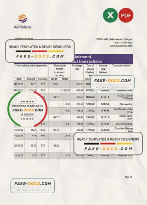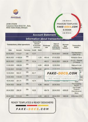 Ethiopia Awash proof of address bank statement template in Word and PDF format