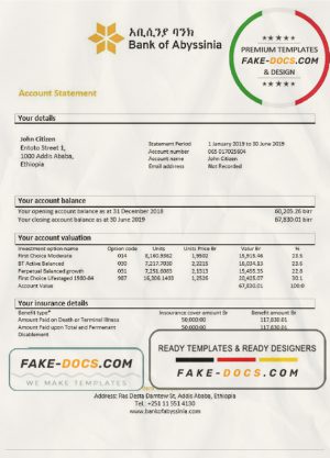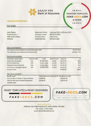 Ethiopia Bank of Abyssinia proof of address bank statement template in Word and PDF format