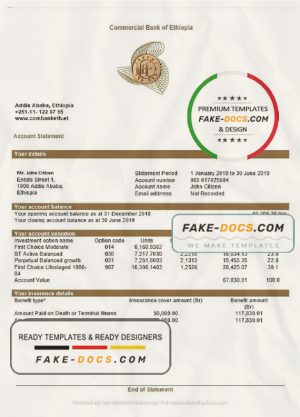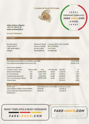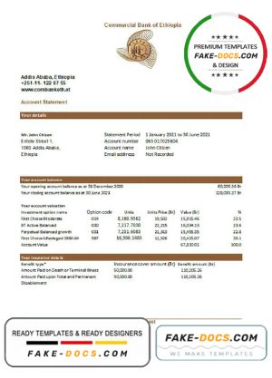 Ethiopia Commercial Bank of Ethiopia bank statement template in Word and PDF format, good for address prove