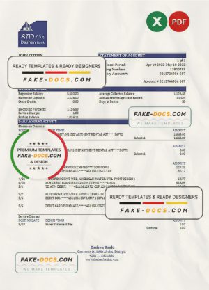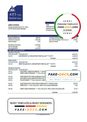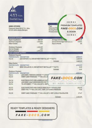 Ethiopia Dashen proof of address bank statement template in Word and PDF format