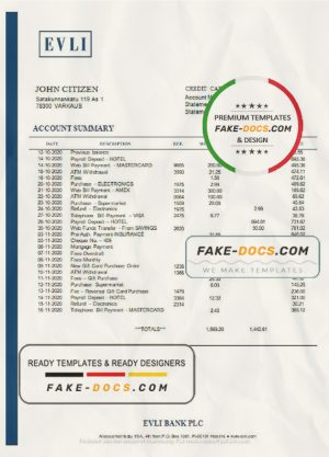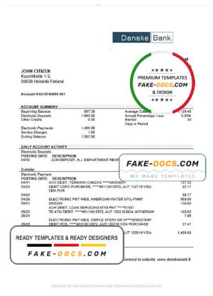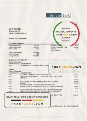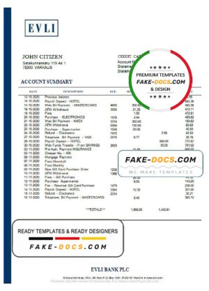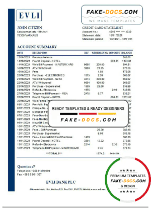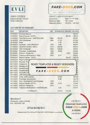 Finland Evli Bank PLC Bank statement template in Word and PDF format