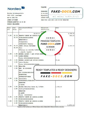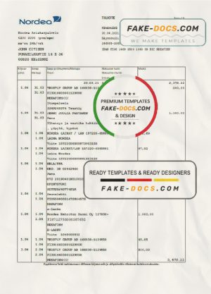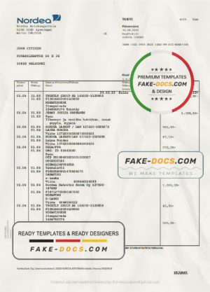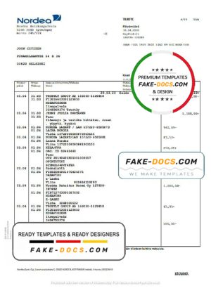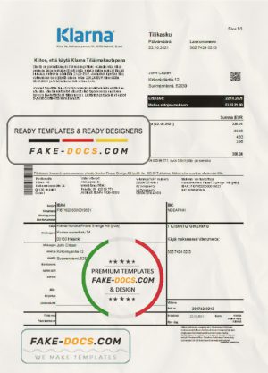 Finland Klarna Bank statement template in Word and PDF format, in Finnish language