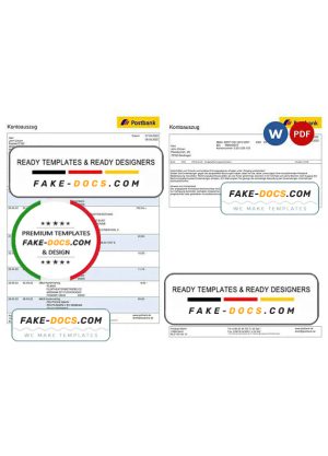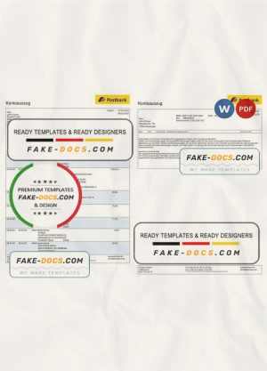 Germany Postbank bank statement, Word and PDF template, 2 pages