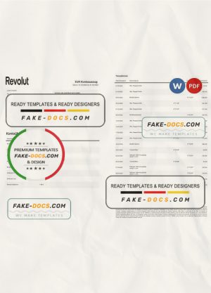 Germany Revolut EUR bank statement template in Word and PDF format, 2 pages