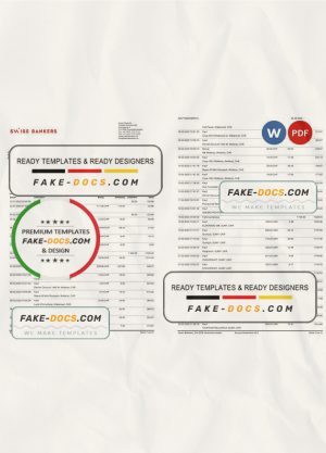 Germany Swiss Bank statement template in Word and PDF format in German language, 5 pages