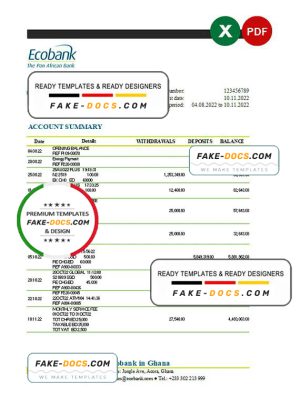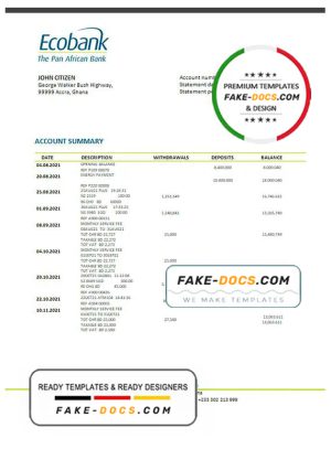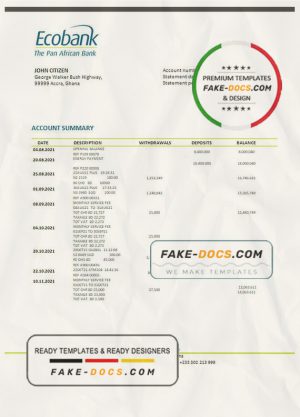 Ghana Ecobank proof of address bank statement template in Word and PDF format