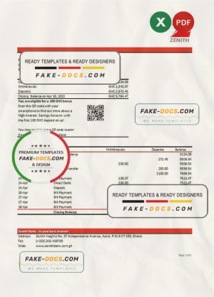 Ghana Zenith proof of address bank statement template in Word and PDF format