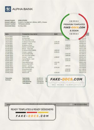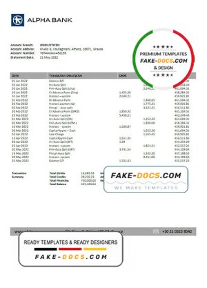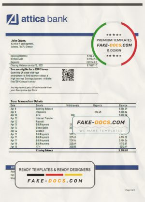 Greece Attica proof of address bank statement template in Word and PDF format, .doc and .pdf format