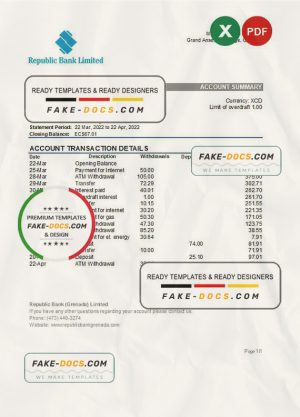 Grenada Republic bank statement Excel and PDF template