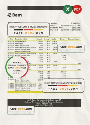 Guatemala Agromercantil bank statement Excel and PDF template