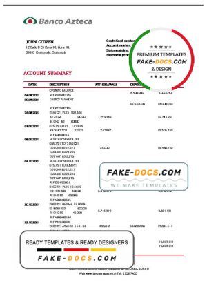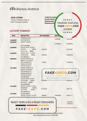 Guatemala Azteca proof of address bank statement template in Word and PDF format (.doc and