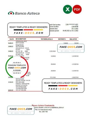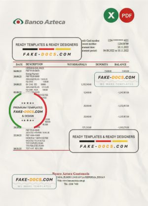 Guatemala Azteca bank statement Excel and PDF template