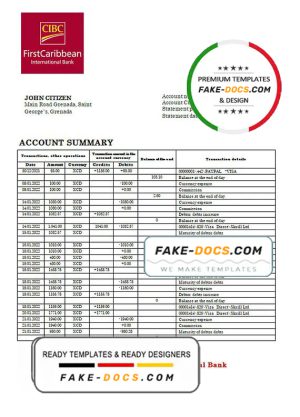 Grenada CBIC bank statement template in Word and PDF format