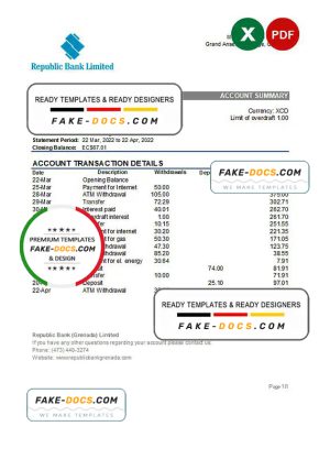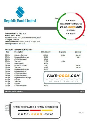 Grenada Republic bank statement template in Word and PDF format