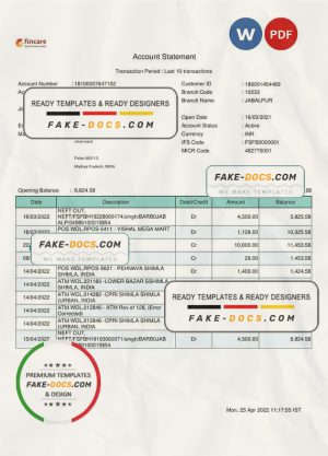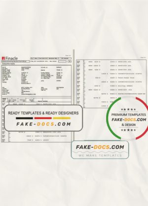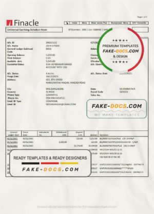 India Finacle bank statement in Excel and PDF format (2 pages)