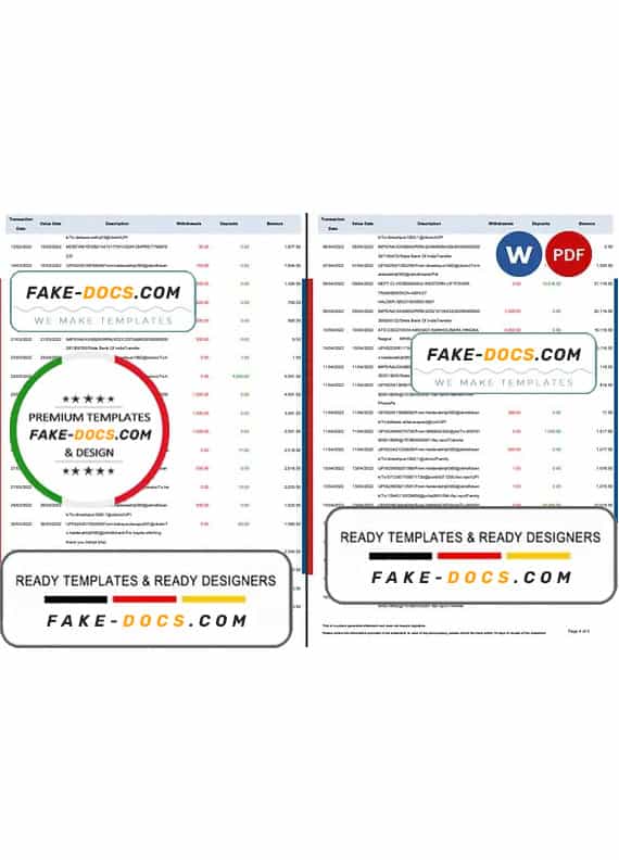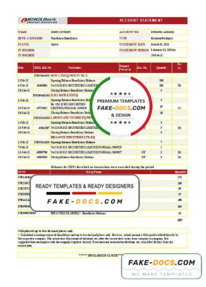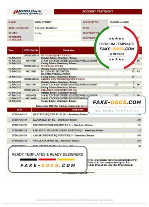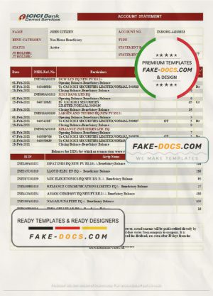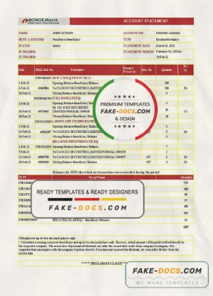 India ICICI Bank statement template in Word and PDF format (2 pages)