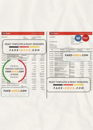 India Kotak Mahindra bank statement Word and PDF template, 7 pages