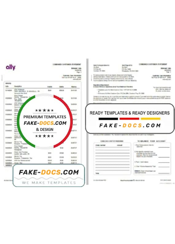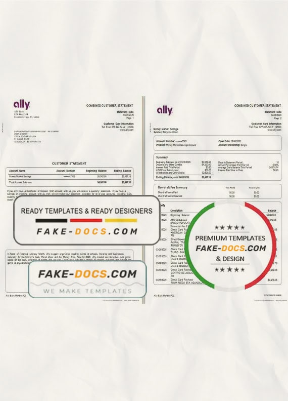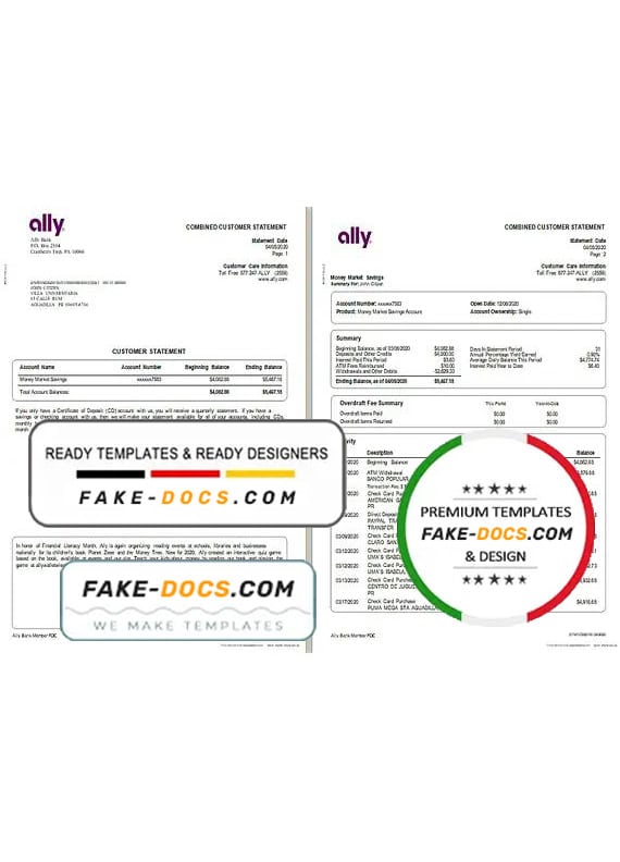 USA Ally Bank statement template in Word and PDF format (4 pages)