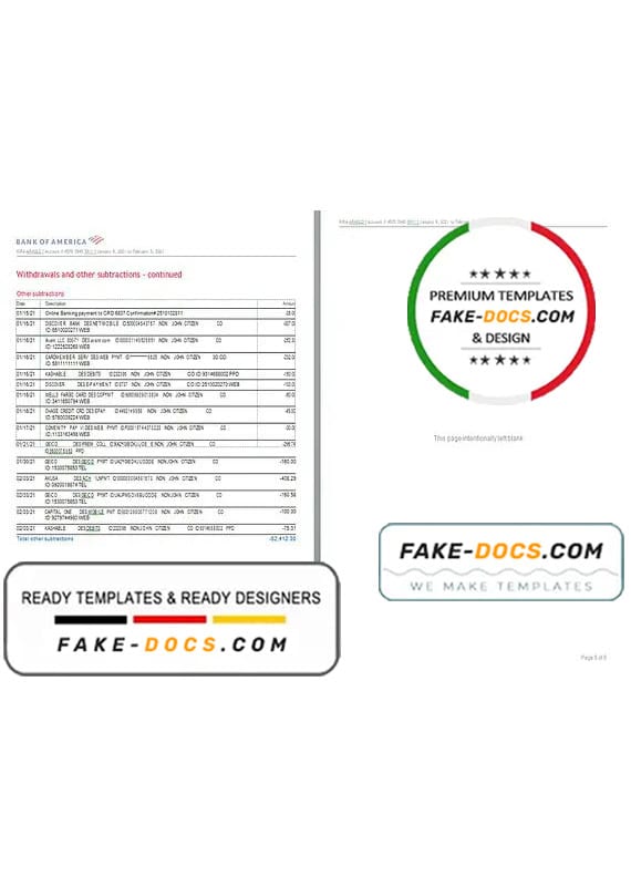 USA Bank of America bank statement template in Word and PDF format (6 pages), version 2