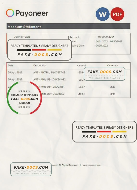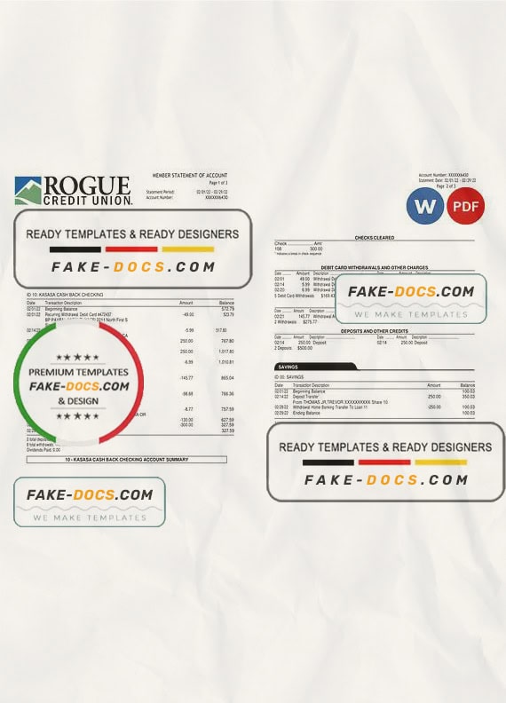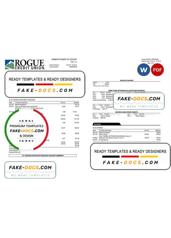 USA Oregon Rogue bank statement, Word and PDF template, 3 pages
