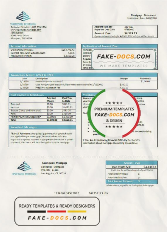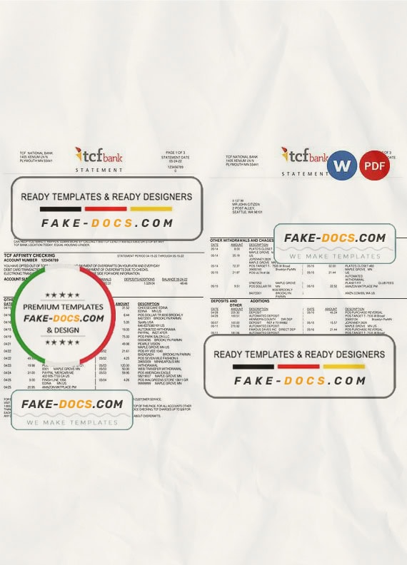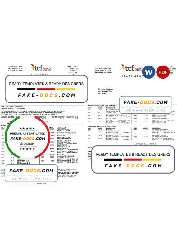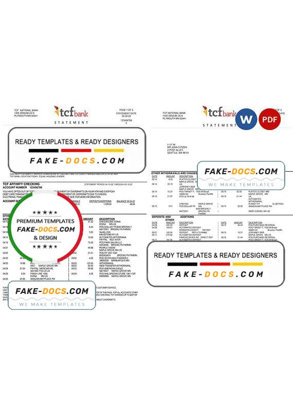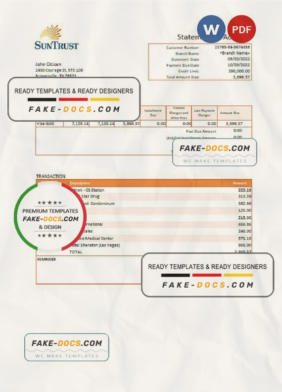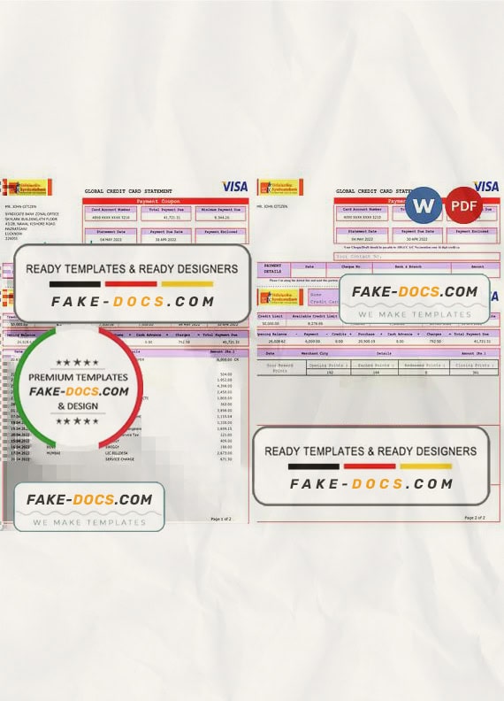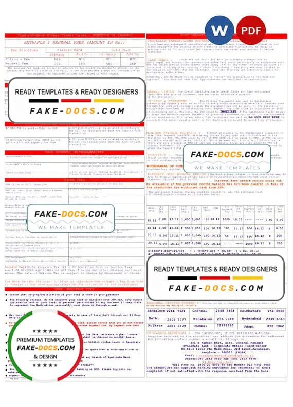 USA Syndicate bank credit card statement, Word and PDF template, 3 pages