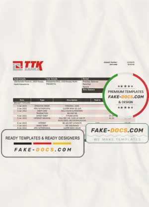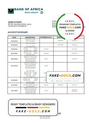 Madagascar Bank of Africa bank statement template in Word and PDF format