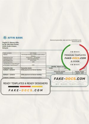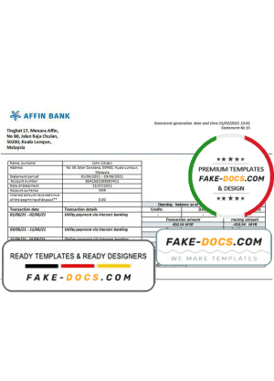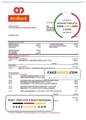 Malaysia Ambank bank statement template, Word and PDF format (.doc and .pdf)