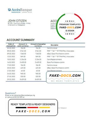 Madagascar Acces Banque bank statement template in Word and PDF format