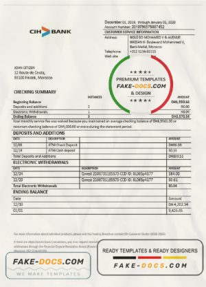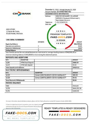 Morocco CIH bank proof of address statement template in Word and PDF format