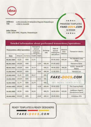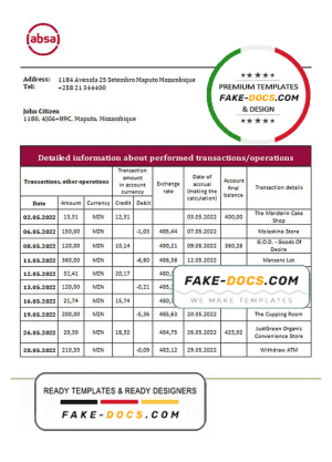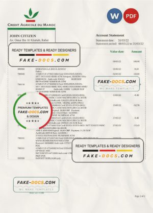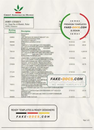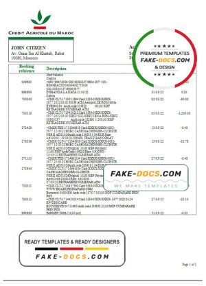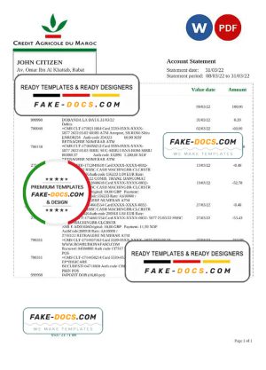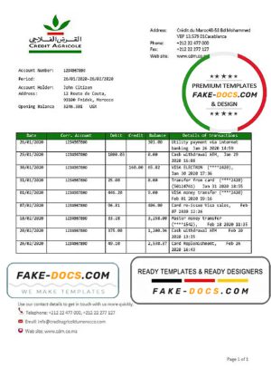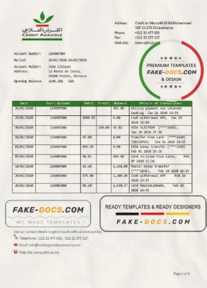 Morocco Credit Agricole bank statement template in Word and PDF format, good for address prove