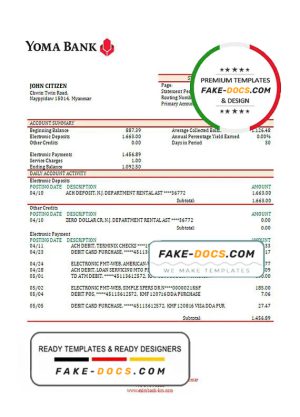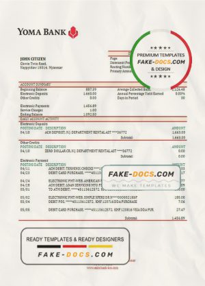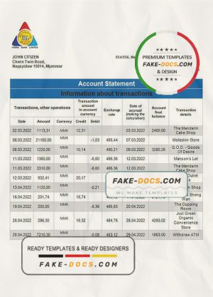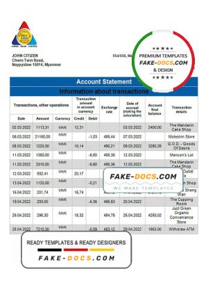 Myanmar Innwa Bank Limited bank statement template in Word and PDF format
