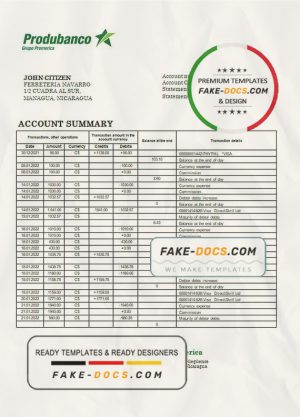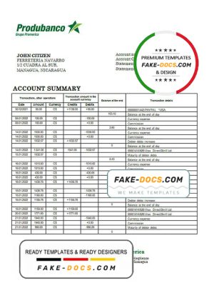 Nicaragua Banco de la Producción bank statement template, Word and PDF format (.doc and .pdf)