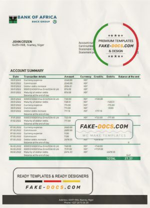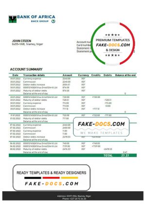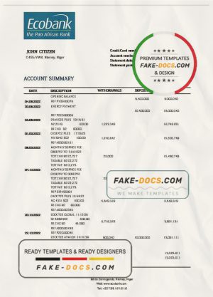 Niger Ecobank bank statement template, Word and PDF format (.doc and .pdf)