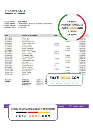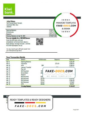 New Zealand Kiwibank bank statement template in Word and PDF format
